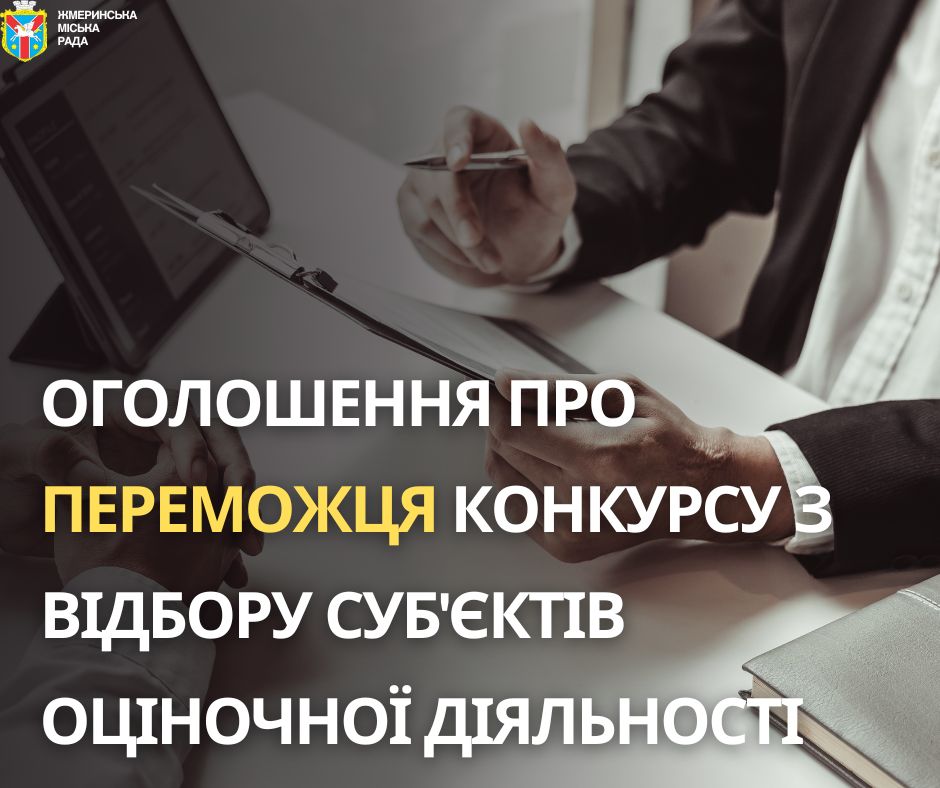 Оголошення про переможця конкурсу з відбору суб'єктів оціночної діяльності