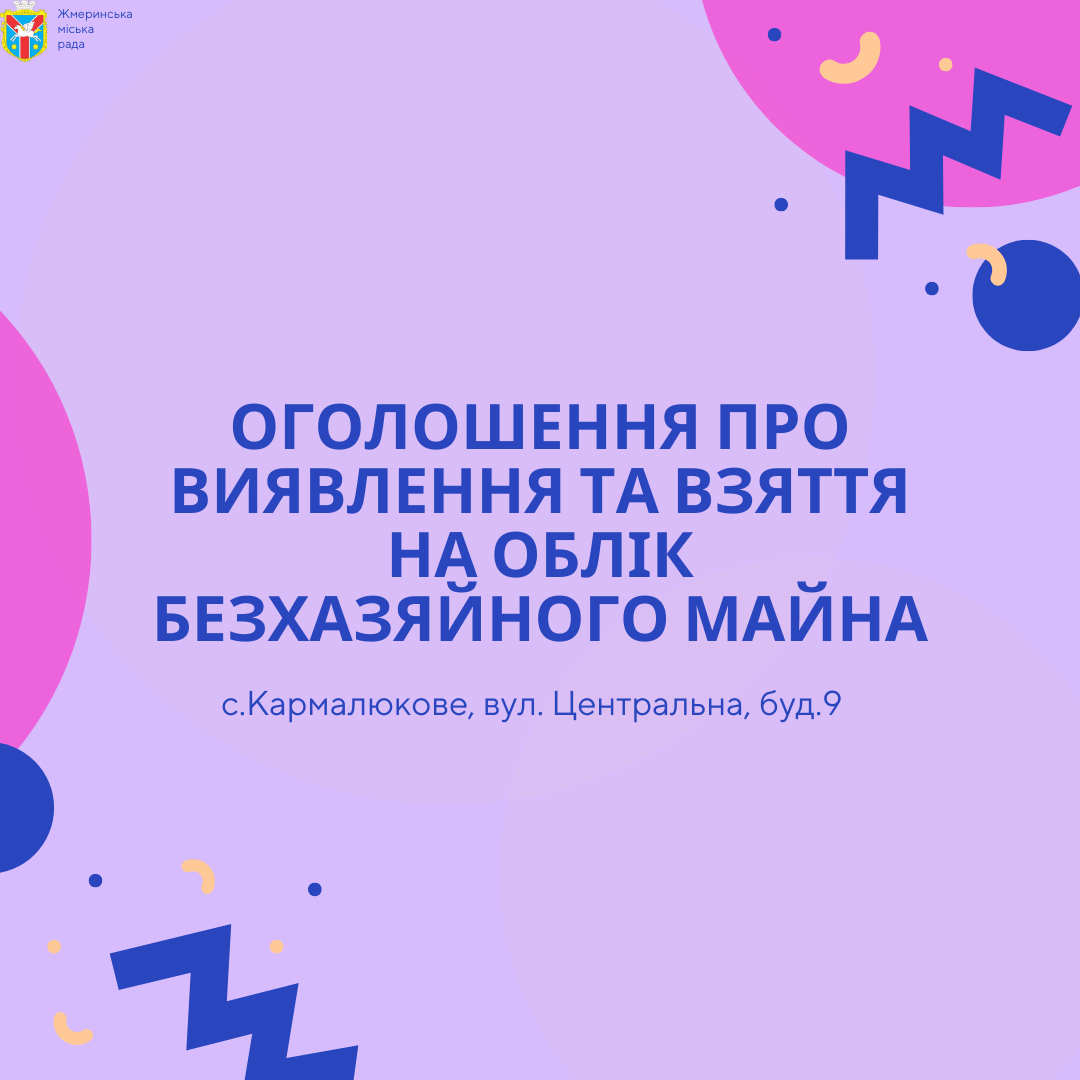 Оголошення про виявлення та взяття на облік безхазяйного майна